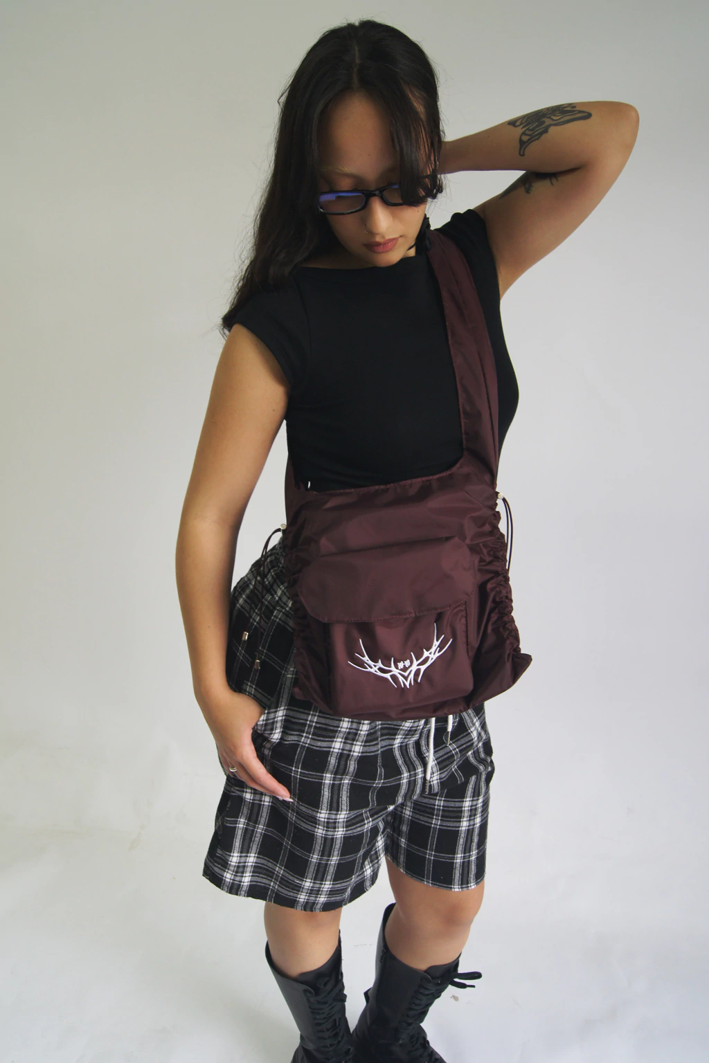 Bolsa inspirada na modelagem parachute. Tem regulagem na lateral e bolso frontal super espaçoso com bordado perfeito de tribal HI-LO.